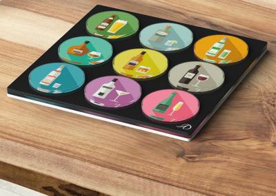 Tray with 9 coasters decorated in black, white and acrylic glass.