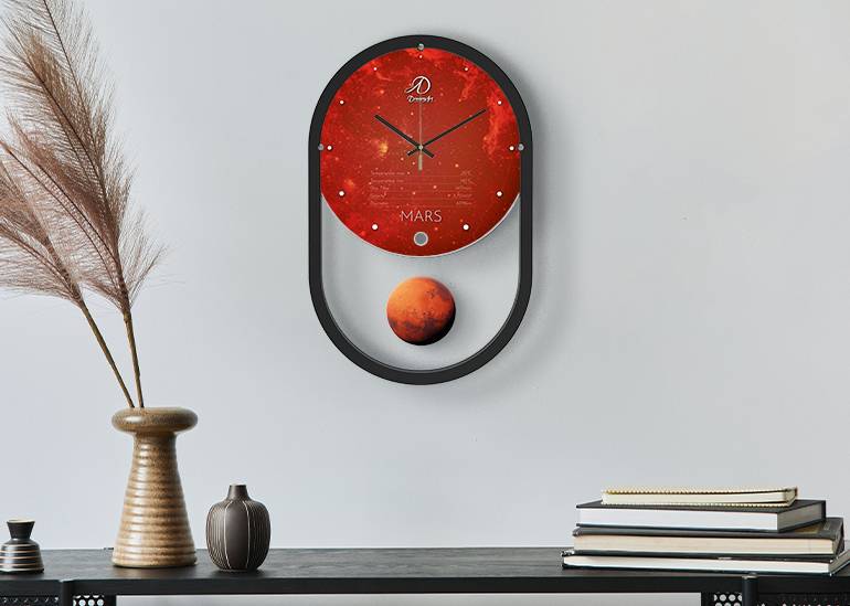 Et pour les amateurs d’horlogerie et d’astronomie, nous avons une variante inspirée par les astres de notre système solaire. Le balancier de cette pendule représente les planètes en mouvement, créant une impression de voyage à travers l’espace à chaque tic-tac.