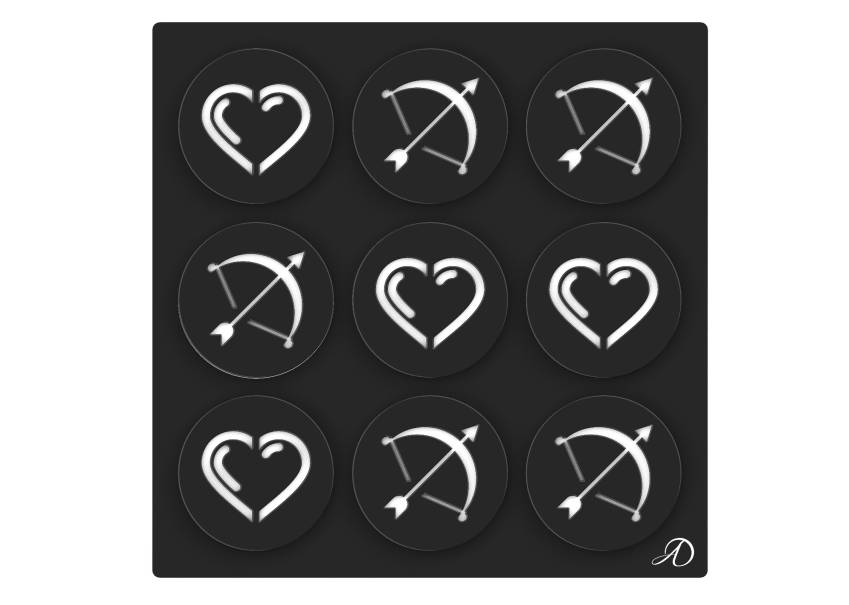 Avec OXO, on revisite le jeu du morpion tout en sobriété. Noir ou blanc ? Choisissez le côté sur lequel vous souhaitez jouer. Avec une variété de décors disponibles, on passe du jeu de morpion à un plateau aux dessous de verres originaux.
