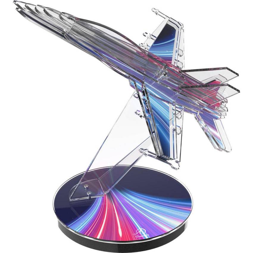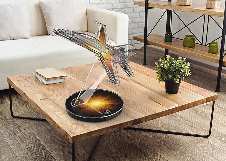 Nous avons créé un objet qui relie l'image à la sculpture.Il apportera à votre bureau ou à votre salon un élément décoratif unique. Symbole d'excellence en référence à Top Gun, cet avion de chasse mythique représente la performance. Il vous emmènera vers d'autres horizons grâce à ses décors imprimés sur ses ailes et son socle.